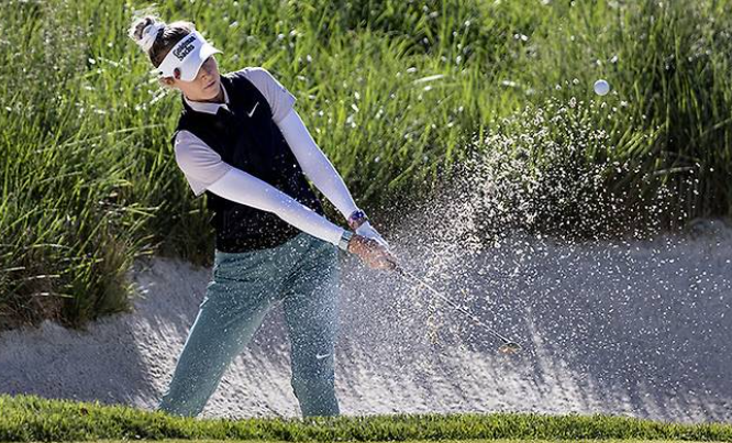 넬리 코다에게 괴로움을 선사한 것은 161야드(147m)짜리 파3 홀에서 벌어졌다. 12번 홀에서 넬리 코다의 티샷이 벙커에 빠졌으며 이 벙커에서 친 두 번째 샷이 조금 짧으면서 경사를 흘러 내려가 페널티 구역으로 들어갔다.