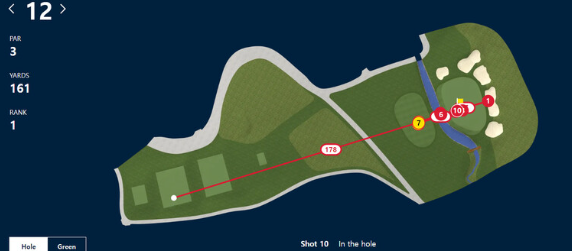 참고로) 12번 홀의 기준 전장은 161야드이며, 1라운드에선 티박스를 2야드 뒤로 빼놔 163야드로 진행했다. 그린 앞쪽으로는 개천이 흐르고 뒤쪽으로는 벙커가 있으며, 그린은 벙커 쪽에서부터 개천 쪽으로 경사가 심한 것으로 알려졌다.
