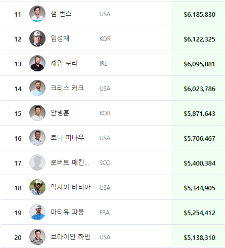 | 2024년 KPGA 상금 랭킹 순위(2024.09) (0) | 2024.09.03 |
