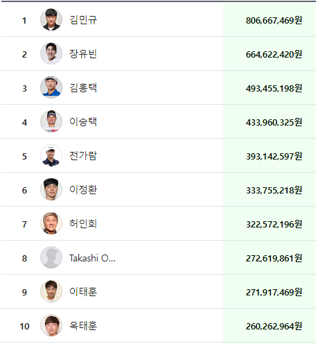 | 2024년 KLPGA 상금 랭킹 순위(2024.09) (0) | 2024.09.03 |