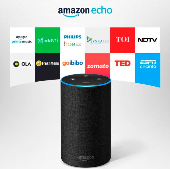 에코는 스마트 스피커로서 음성 인식 기능을 탑재하고 있습니다. 사용자가 "알렉사(Alexa)"라는 웨이크 워드를 사용하여 에코에게 음성 명령을 할 수 있습니다.