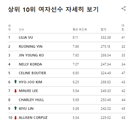 고진영은 여자 골프 세계랭킹에서 7.60점을 받아 세계랭킹 3위이다.